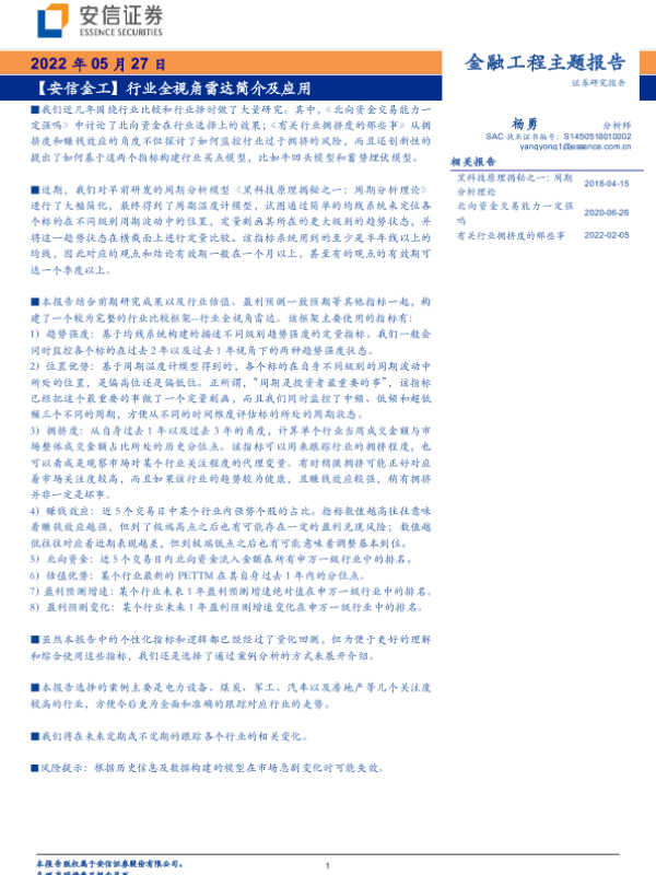 【安信证券】【20220527】【安信金工】行业全视角雷达简介及应用-17页