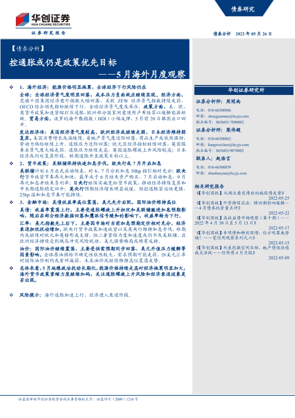 【华创证券】【20220526】【债券分析】5月海外月度观察:控通胀或仍是政策优先目标-21页