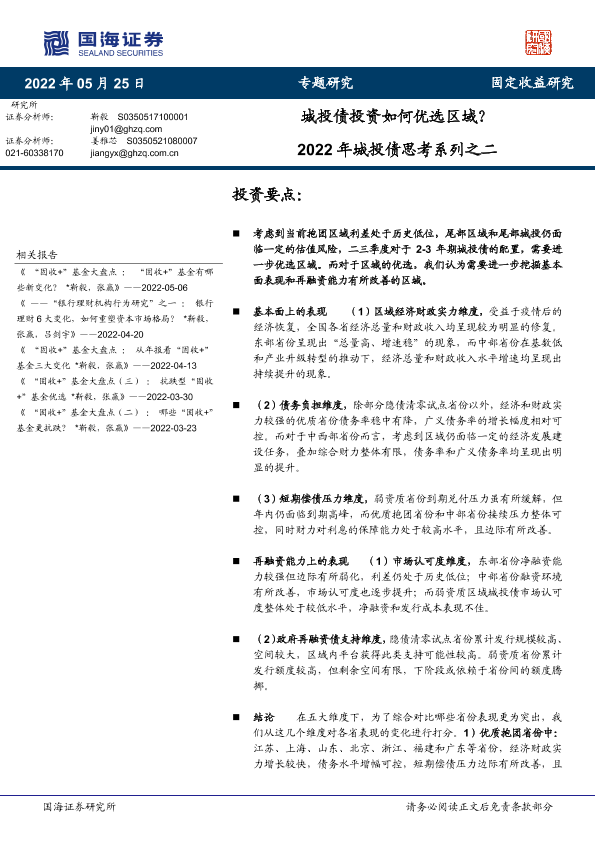 【国海证券】【20220525】2022年城投债思考系列之二:城投债投资如何优选区域?-25页
