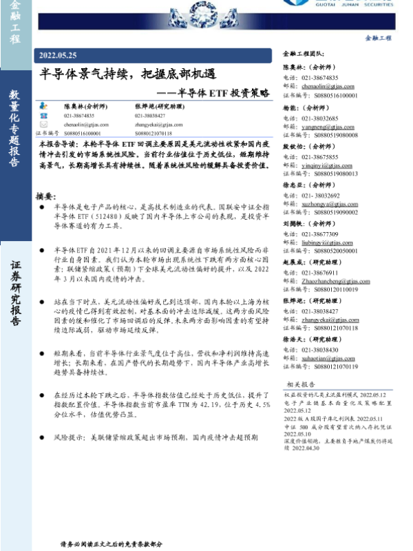 【国泰君安证券】【20220525】半导体景气持续,把握底部机遇——半导体 ETF投资策略-15页