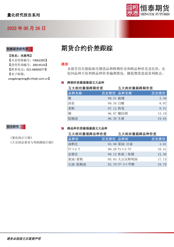 【恒泰期货】【20220526】期货合约价差跟踪-16页