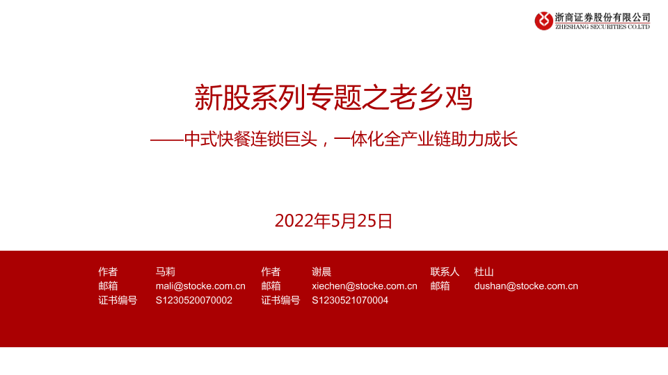 【浙商证券】【20220525】新股系列专题之老乡鸡——中式快餐连锁巨头,一体化全产业链助力成长-27页