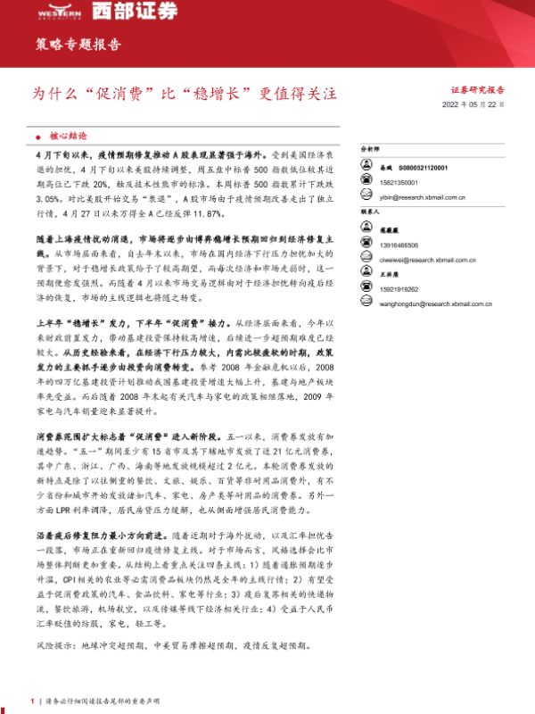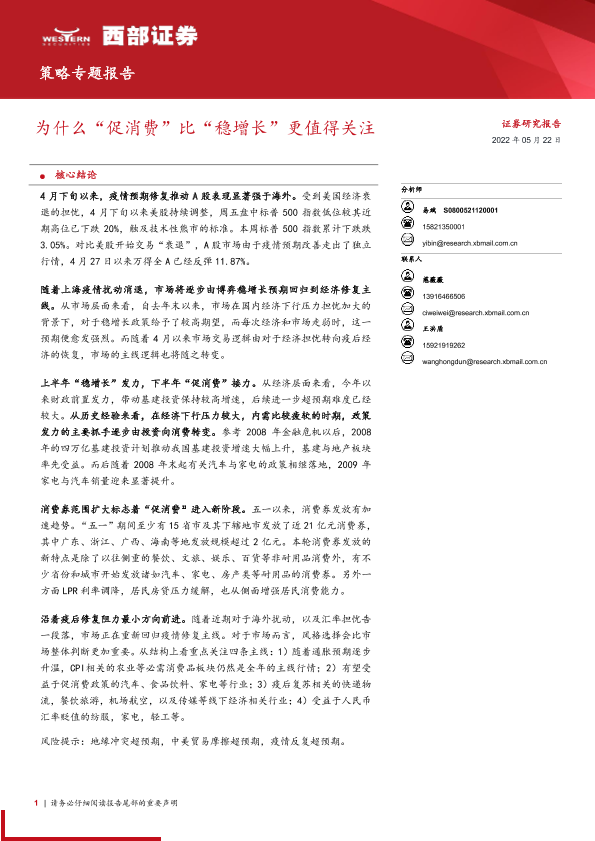 【西部证券】【20220522】策略专题报告:为什么“促消费”比“稳增长”更值得关注-17页