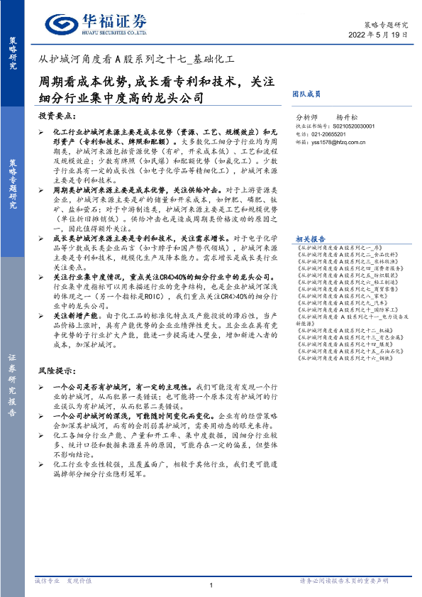 【华福证券】【20220519】从护城河角度看A股系列之十七_基础化工:周期看成本优势,成长看专利和技术,关注细分行业集中度高的龙头公司-44页