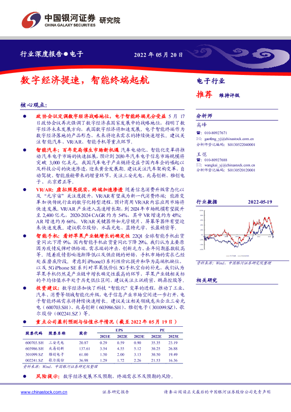 【银河证券】【20220520】电子行业:数字经济提速,智能终端起航-23页