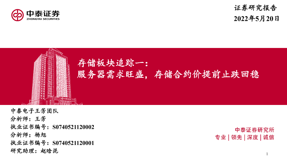 【中泰证券】【20220520】电子行业存储板块追踪一:服务器需求旺盛,存储合约价提前止跌回稳-49页