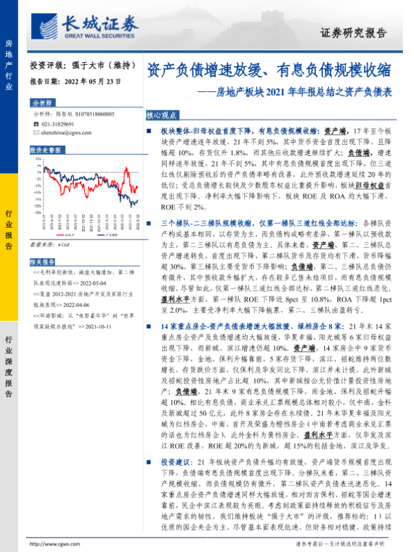 【长城证券】【20220523】房地产行业板块2021年年报总结之资产负债表:资产负债增速放缓、有息负债规模收缩-31页