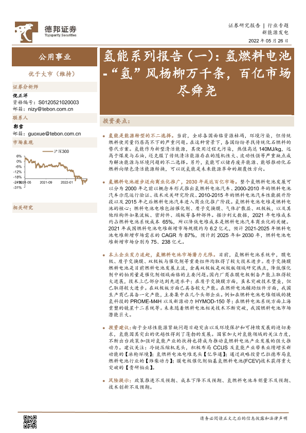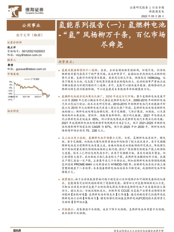 【德邦证券】【20220526】公用事业行业氢能系列报告(一):氢燃料电池_“氢”风杨柳万千条,百亿市场尽舜尧-29页
