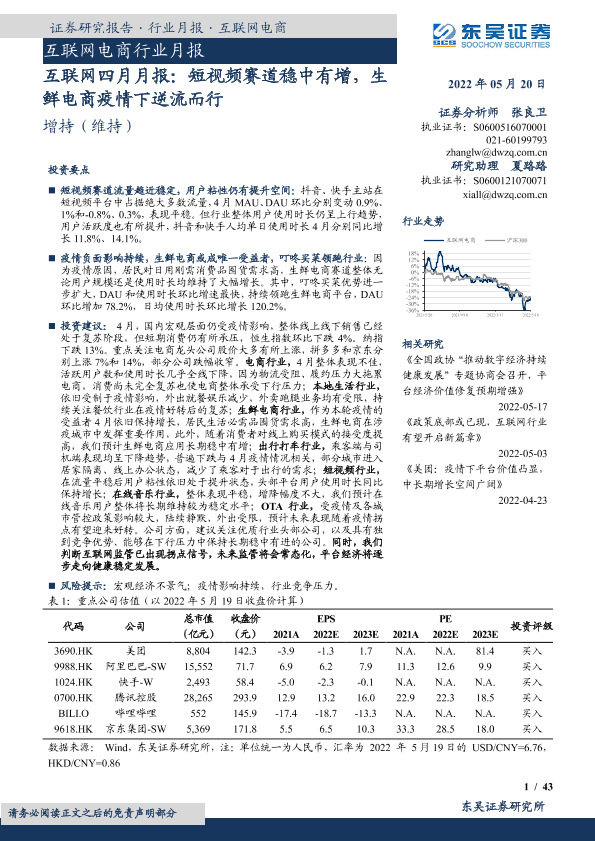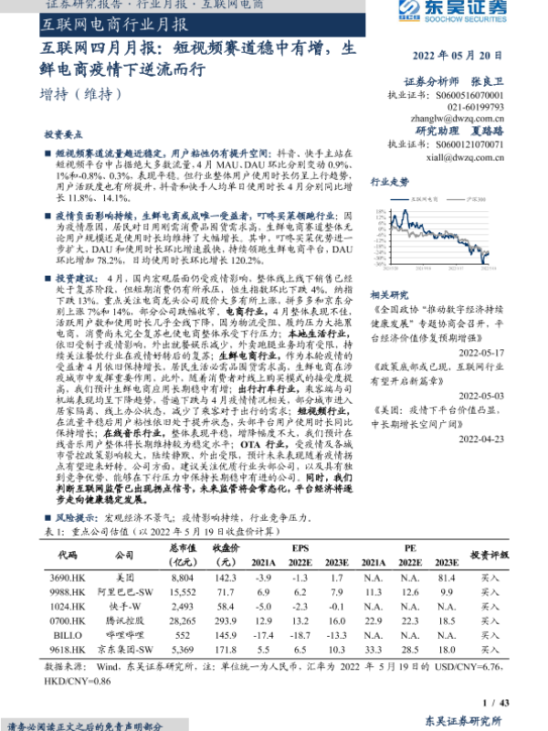 【东吴证券】【20220520】互联网行业四月月报:短视频赛道稳中有增,生鲜电商疫情下逆流而行-43页