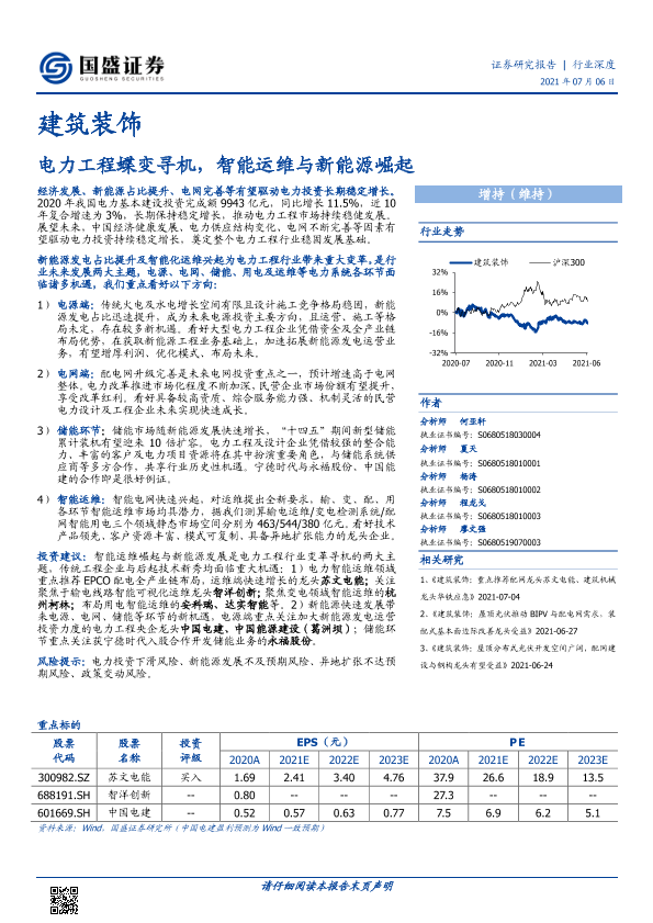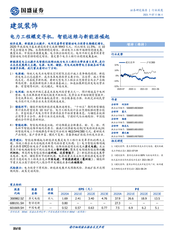 【国盛证券】【20210706】建筑装饰行业:电力工程蝶变寻机,智能运维与新能源崛起-40页