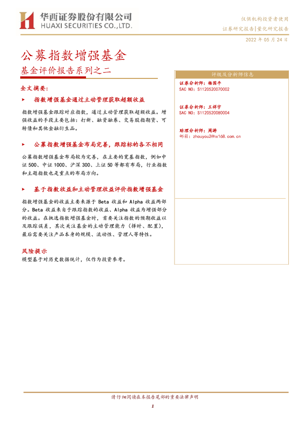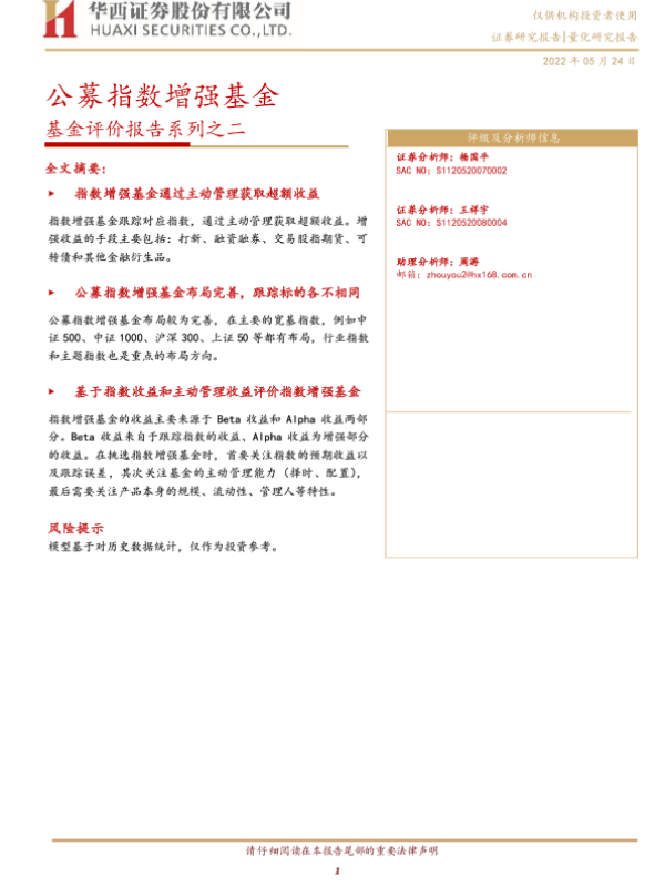 【华西证券】【20220524】基金评价报告系列之二:公募指数增强基金-23页