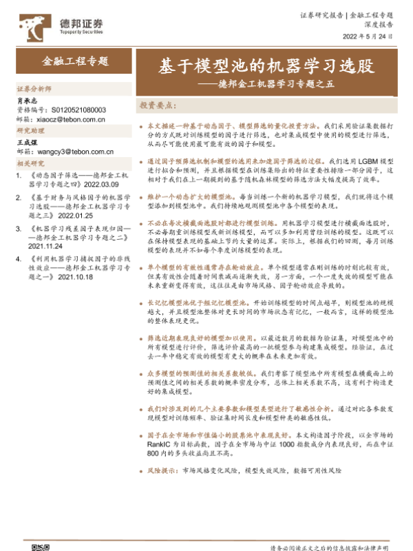【德邦证券】【20220524】基于模型池的机器学习选股——德邦金工机器学习专题之五-21页