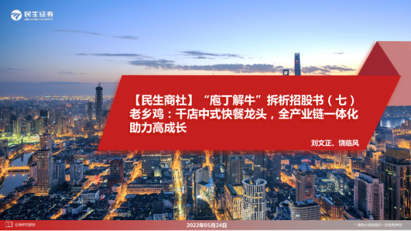 【民生证券】【20220524】快餐行业【民生商社】“庖丁解牛”拆析招股书(七)老乡鸡:千店中式快餐龙头,全产业链一体化助力高成长-32页