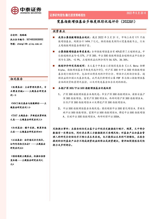 【中泰证券】【20220520】宽基指数增强基金多维度跟踪优选评价(2022Q1)-34页