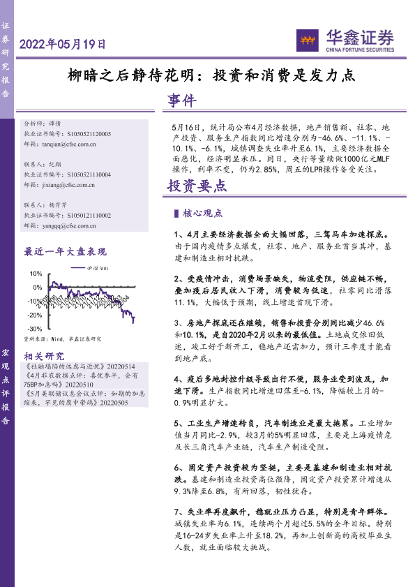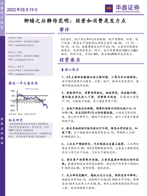 【华鑫证券】【20220519】柳暗之后静待花明:投资和消费是发力点-15页