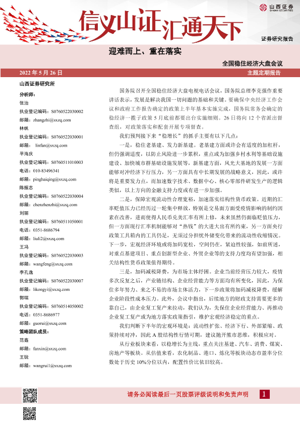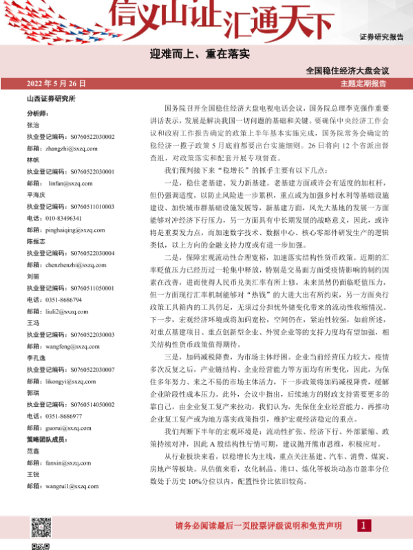 【山西证券】【20220526】全国稳住经济大盘会议:迎难而上、重在落实-23页
