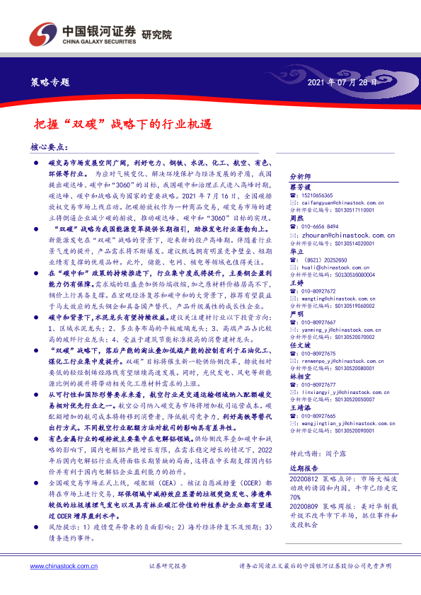 【银河证券】【20210728】策略专题:把握“双碳”战略下的行业机遇-49页