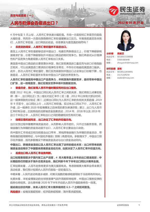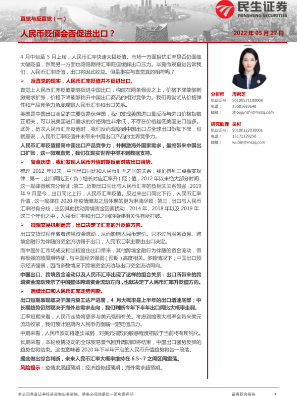 【民生证券】【20220527】直觉与反直觉(一):人民币贬值会否促进出口?-15页