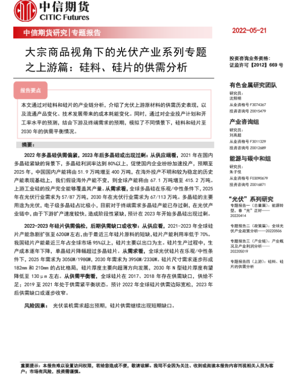 【中信期货】【20220521】专题报告:大宗商品视角下的光伏产业系列专题之上游篇,硅料、硅片的供需分析-28页
