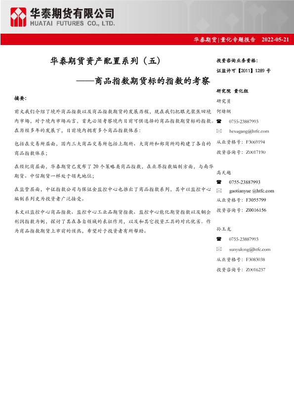 【华泰期货】【20220521】资产配置系列(五):商品指数期货标的指数的考察-26页