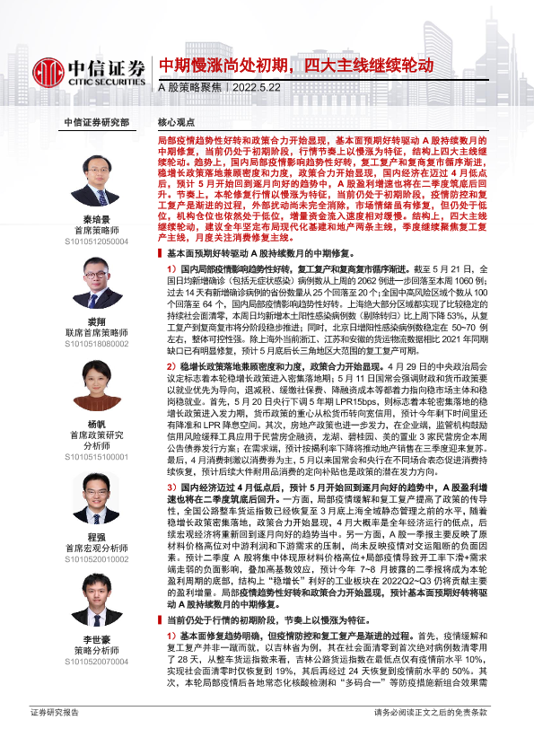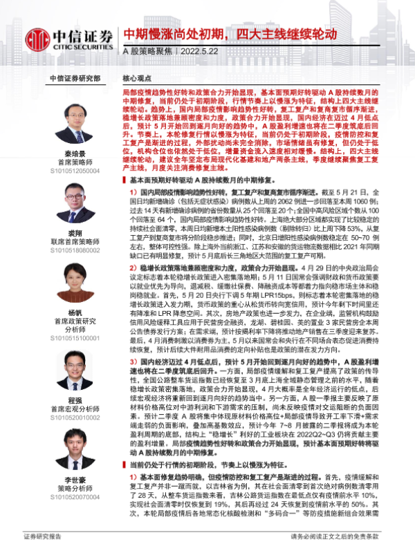 【中信证券】【20220522】A股策略聚焦:中期慢涨尚处初期,四大主线继续轮动-24页