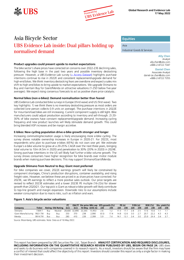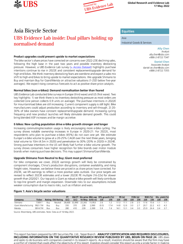 【瑞银】【20220517】瑞银-亚太地区自行车行业-瑞银证据实验室内部报告:双支柱撑起正常化需求-33页