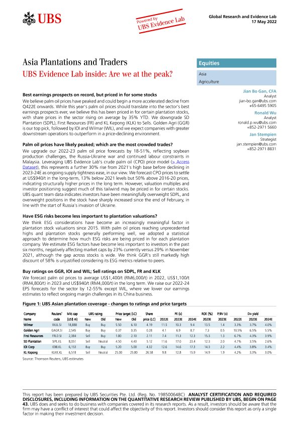 【瑞银】【20220517】瑞银-亚太地区种植交易行业-瑞银证据实验室内部报告:我们处于高峰了吗?-50页