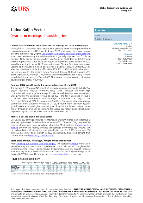 【瑞银】【20220516】瑞银-中国白酒行业-近期收益下滑已被市场消化-23页