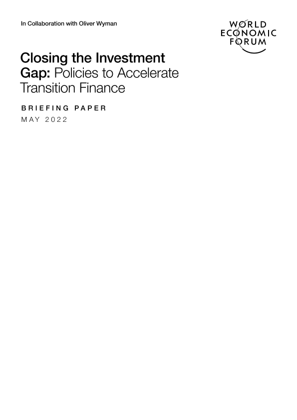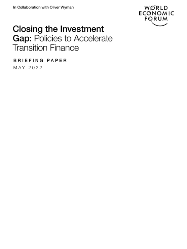 【世界经济论坛】【202205】Closing the Investment Gap Policies to Accelerate Transition Finance-8页