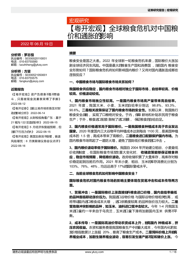 【粤开证券】【20220619】全球粮食危机对中国粮价和通胀的影响-18页