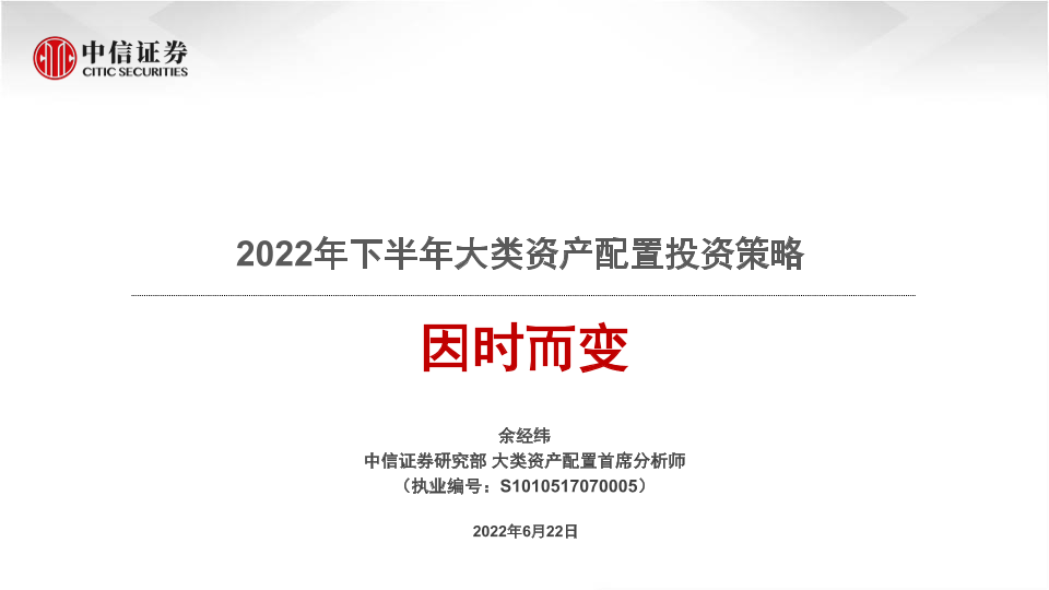 【中信证券】【20220622】2022年下半年大类资产配置投资策略:因时而变-43页