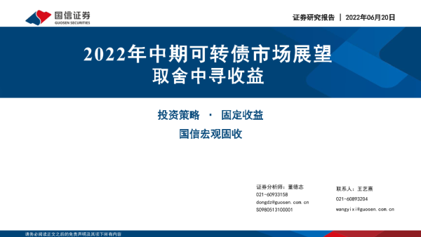 中期展望 可转债市场 固定收益 国信证券 投资策略