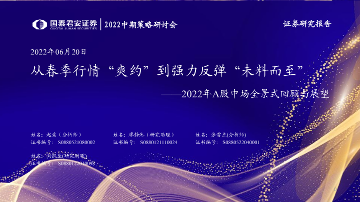 【国泰君安证券】【20220620】2022中期策略研讨会:2022年A股中场全景式回顾与展望,从春季行情“爽约”到强力反弹“未料而至”-37页