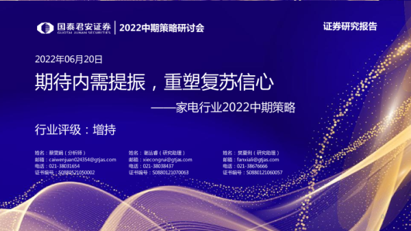 【国泰君安证券】【20220620】2022中期策略研讨会:家电行业2022中期策略,期待内需提振,重塑复苏信心-44页