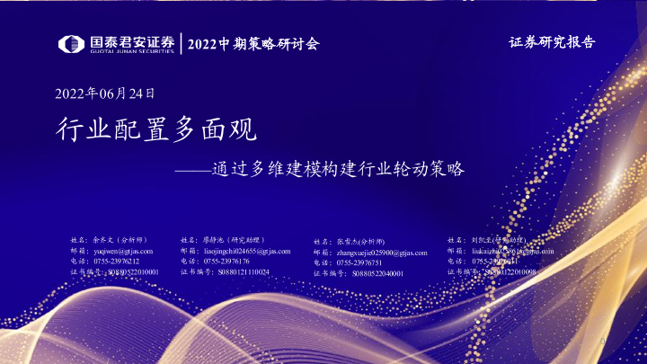 【国泰君安证券】【20220624】2022中期策略研讨会:通过多维建模构建行业轮动策略,行业配置多面观-38页