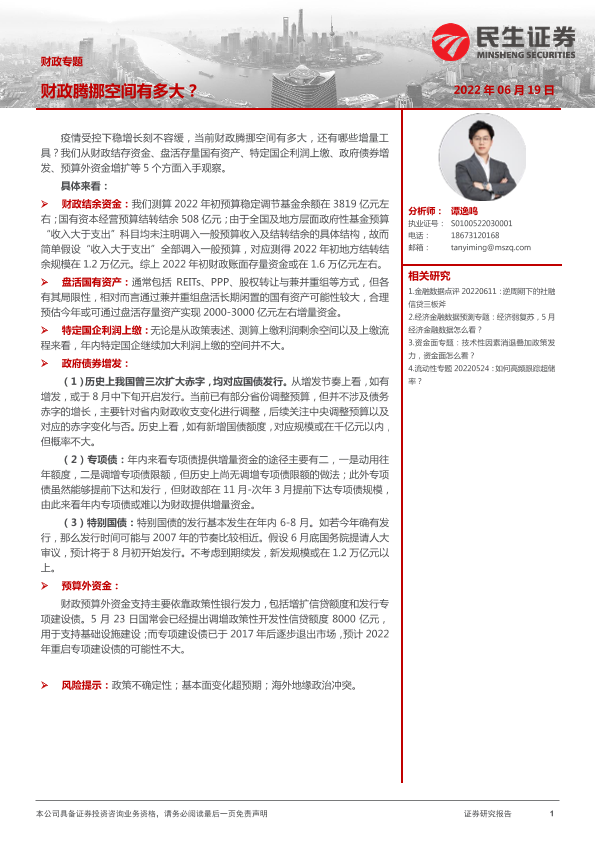 【民生证券】【20220619】财政专题:财政腾挪空间有多大?-21页