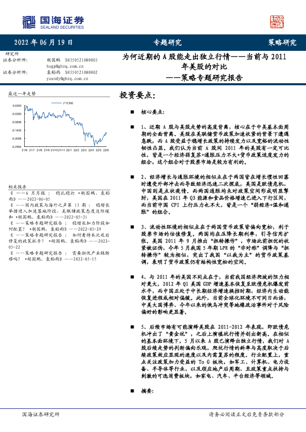 【国海证券】【20220619】策略专题研究报告:当前与2011年美股的对比,为何近期的A股能走出独立行情-20页