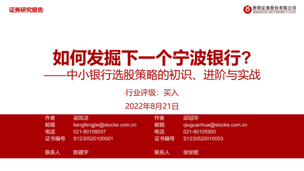 【浙商证券】【20220821】中小银行业选股策略的初识、进阶与实战:如何发掘下一个宁波银行-74页