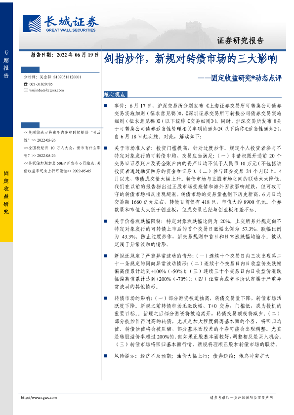 【长城证券】【20220619】固定收益研究动态点评:剑指炒作,新规对转债市场的三大影响-24页