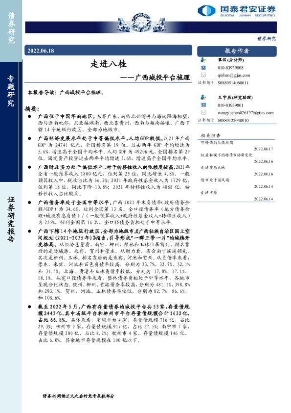 【国泰君安证券】【20220618】走进八桂——广西城投平台梳理-17页