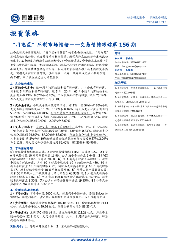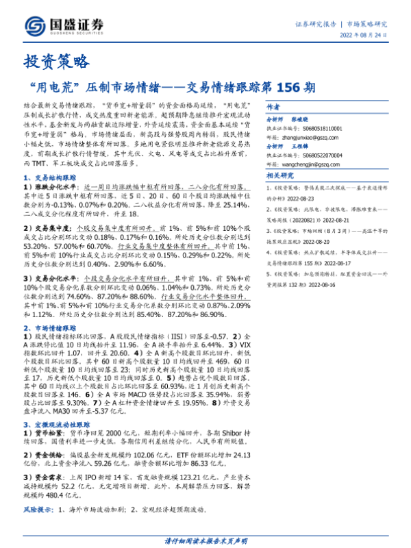 【国盛证券】【20220824】交易情绪跟踪第156期:“用电荒”压制市场情绪-16页