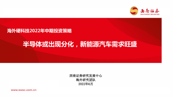 【西南证券】【202206】海外硬科技行业2022年中期投资策略:半导体或出现分化,新能源汽车需求旺盛-36页