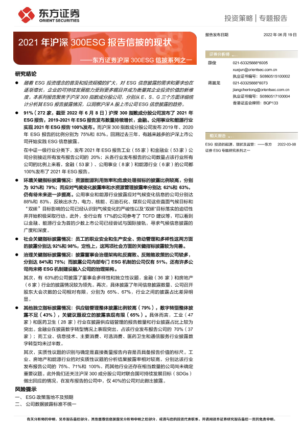 【东方证券】【20220619】沪深300ESG信披系列之一:2021年沪深300ESG报告信披的现状-23页