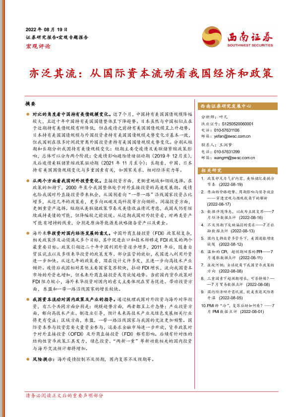 【西南证券】【20220819】亦泛其流:从国际资本流动看我国经济和政策-15页