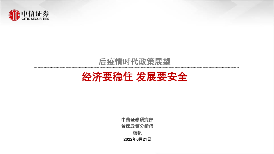 【中信证券】【20220621】后疫情时代政策展望:经济要稳住,发展要安全-21页