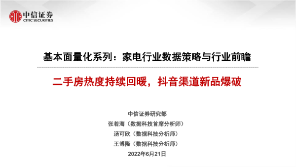 【中信证券】【20220621】基本面量化系列:家电行业数据策略与行业前瞻,二手房热度持续回暖,抖音渠道新品爆破-21页