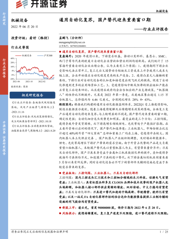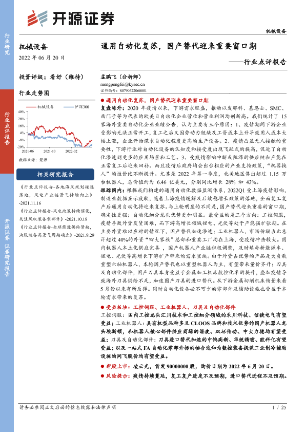 【开源证券】【20220620】机械设备行业点评报告:通用自动化复苏,国产替代迎来重要窗口期-25页