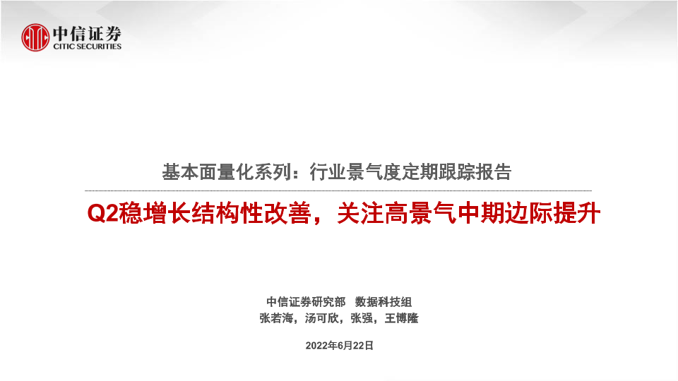 【中信证券】【20220622】基本面量化系列:行业景气度定期跟踪报告,Q2稳增长结构性改善,关注高景气中期边际提升-18页