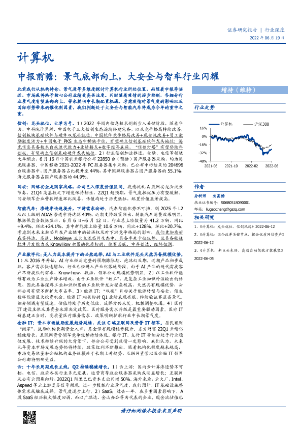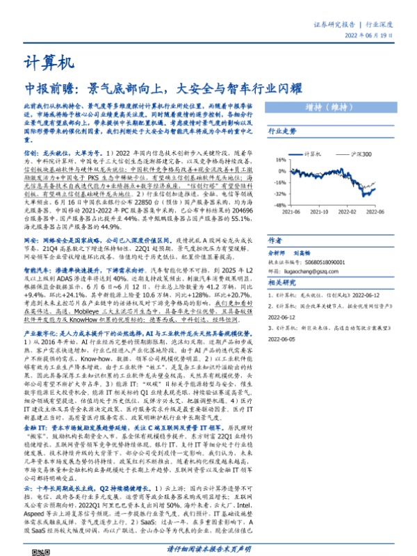 【国盛证券】【20220619】计算机行业中报前瞻:景气底部向上,大安全与智车行业闪耀-38页