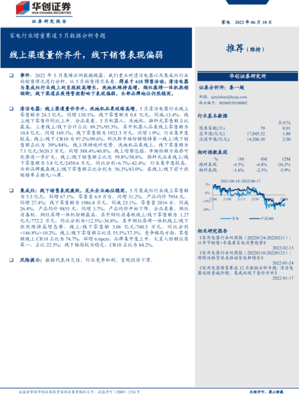 【华创证券】【20220618】家电行业增量赛道5月数据分析专题:线上渠道量价齐升,线下销售表现偏弱-23页